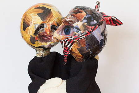 The collages are too detailed to come out in photographs, but the puppets can be easily distinguished.