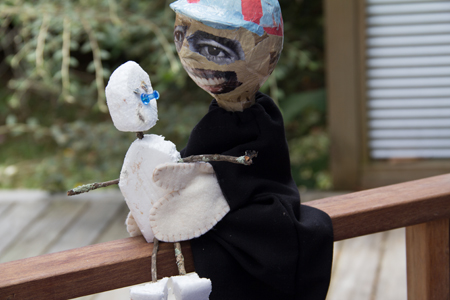 Thanks for pointing this out. This is was my main concern, that he didn’t understand the original concept – the ‘river polish’ of the styrofoam. However, in his defense, he can not go to a river, being not water proof, so he had to adapt to his environment and go through the jumbo bin at the house. You are right there is a bit of his own thinking in it, and I know he wanted to do it for a while. So he didn’t jump in without processing what he has seen first.
