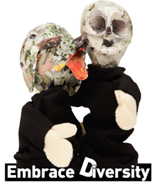 In the end I asked Alien to get together with Devil for one last image. I thought he might be a good influence and cheer him up. It didn’t work, but I still love this image. I immediately thought of a caption for it: “Embrace Diversity”.