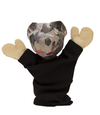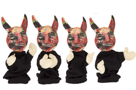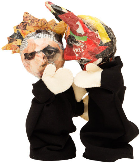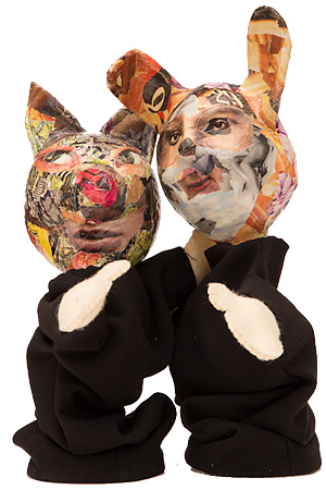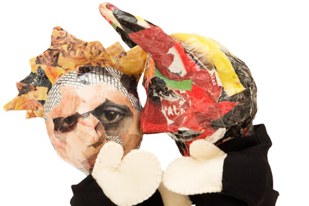 Yesterday the three volunteers and I went into the studio. And, boy, did we have fun! The images I had envisaged are simple clear cut full body shots of the individual puppets. They bring out their character and can be understood without the background knowledge of the book or the blog. The three characters I dealt with yesterday couldn’t be more different. I took the images separately and what you see above is a composite.