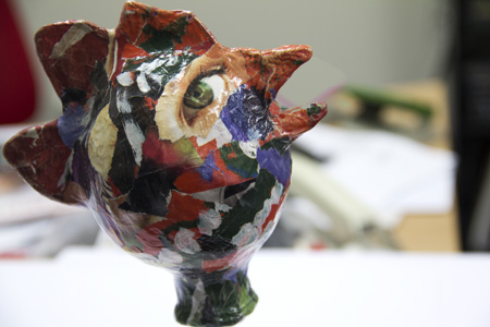 Phew, the exhibition is finally underway. But what a nightmare it was to get there… I have to apologise for neglecting the blog for a little while. I honestly wanted to get back into writing daily in the build-up to the opening, but somehow it didn’t pan out like this. I won’t go into detail about the last week, that we had a visitor staying with us while our house didn’t have all the walls, or kitchen, and only one sink, or about the cold nights without insulation. The last 24 hours before The Opening were enough to make a puppet cry… if it still had the energy.