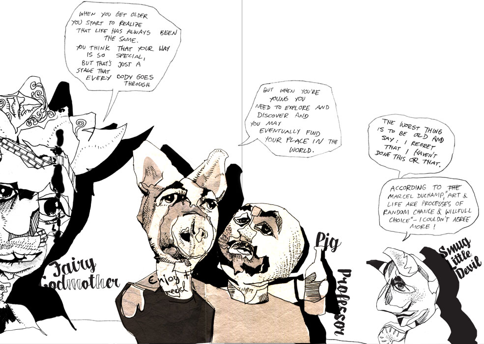 Theresa is a gifted illustrator who won a scholarship to do her Masters in New Zealand. The programme she was enrolled in is a Masters by project. This means the students produce a new body of work and write an exergesis rather than an entirely theoretical thesis. In her project Theresa investigated living in a different culture and her final work was a graphic novel. Much to my suprise, one of the chapters was dedicated to the Dedes. In this chapter she processed the conversations we had and let the puppets do the talking. I have to say, she did a wonderful job capturing the Dedes (and the conversations). I only have a copy of the Dede chapter but you should have seen her other drawings: beautiful and elaborate cityscapes, with heaps to see and read and chuckle about. She is certainly one to watch out for. I have no doubt she will be very, very successful.