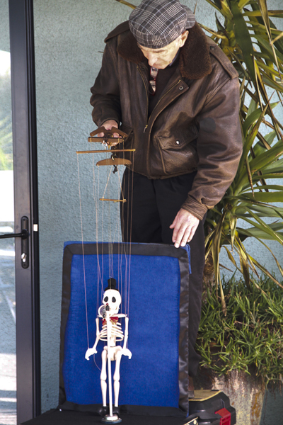 Last week I did three workshops as part of the Festival of Performing Objects. In those workshops the participants used my Dede puppets to come up with an impromptu play and then acted the story out. During the process props have to be created on the fly. The story might end up totally different than originally anticipated. The film I put up today, was the one we did last. The group did not know each other, which of course adds another dimension to the workshop. So it took a while until they came up with a subject they all could relate to. Of all three workshop this one was certainly the most structured story and thought through from from beginning to end.