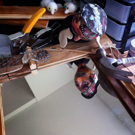 L’Artiste spent time in the studio building a frame for a bathroom mirror