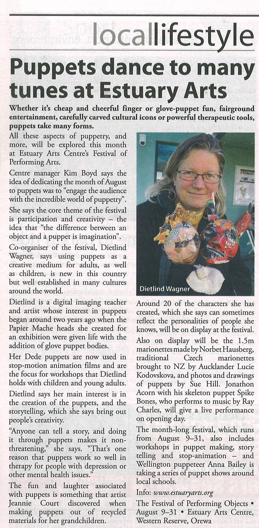 August 2014 – Festival of Performing Object, Estuary Arts Centre Orewa