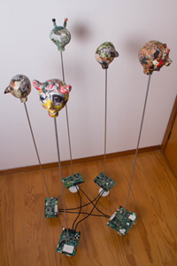 The assemblage explores social networks by employing the subversive art of puppetry. While social networks undoubtedly connect a wide range of people, it can also have an isolating and depressing effect.