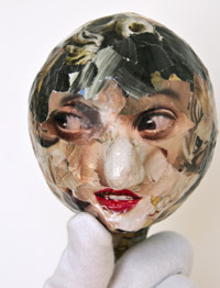 The three images I have put up today are from a series called “Gallery of ancestral portraits”. They are layered and scratched on wood blocks and are sitting on my mantelpiece. When I am painting without intention I always end up with sad faces.